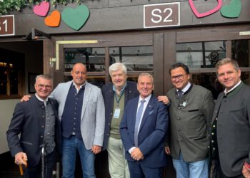 Wie schon im Vorjahr nutzte das Präsidium des Deutschen Schaustellerbundes e. V. das Münchner Oktoberfest – das größte Volksfest der Welt – für eine Sitzung zu den wichtigsten Themen des Verbandes. DSB-Präsident Albert Ritter, die Vizepräsidenten Kevin Kratzsch, Josef Diebold und Bethel Thelen, Hauptgeschäftsführer Frank Hakelberg sowie Peter Bausch, Erster Vorsitzender des Münchner Schausteller-Vereins e. V., tauschten sich dabei nicht nur mit Kolleginnen und Kollegen der Branche über aktuelle Herausforderungen aus.