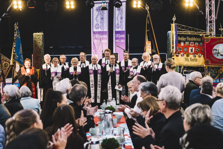 Ein besonderer Höhepunkt war der eindrucksvolle Einmarsch der Traditionsfahnen der Schaustellerverbände – ein starkes Symbol für die große Bedeutung der Schaustellerseelsorge im Leben auf der Reise. Damit wurde nicht nur die engagierte und aufopferungsvolle Arbeit der Seelsorgerinnen und Seelsorger in den vergangenen Jahrzehnten gewürdigt, sondern zugleich unterstrichen, wie unverzichtbar ihre seelsorgerische Begleitung und Unterstützung für die Schaustellerfamilien auch in Zukunft bleibt.