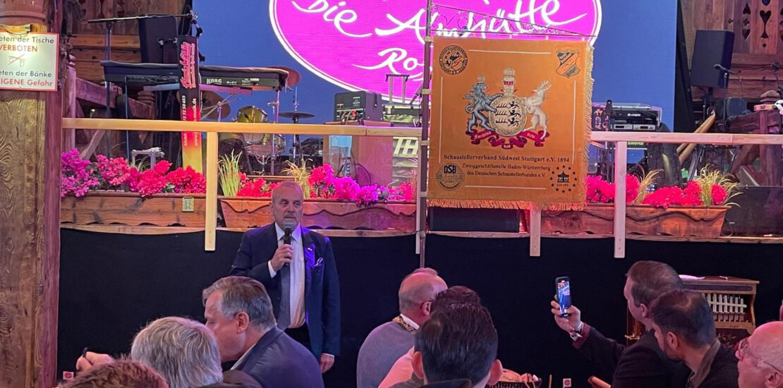 Keine KommentareAm 30. September fand in Stuttgart das 36. Schaustellerfrühstück auf dem Cannstatter Wasen in der festlich geschmückten Almhütte Royal der Familie Renoldi statt. Für eine rundum gelungene Veranstaltung sorgten nicht nur die zahlreich anwesenden Schaustellerfamilien, sondern auch die anregenden Grußworte der Verbandsvertreter um DSB-Präsident Albert Ritter sowie des gastgebenden Ersten Vorsitzenden des Schaustellerverbandes Südwest Stuttgart, Mark Roschmann.