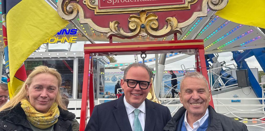 Keine KommentareAm 3. Oktober 2025 war es wieder so weit: Nach der Frühjahrsausgabe im Mai öffnete die Sprödentalkirmes zum zweiten Mal in diesem Jahr ihre Tore. Die feierliche Eröffnung der Herbstkirmes 2025 mit dem traditionellen Kirmeseinläuten fand auf dem Sprödentalplatz in Krefeld statt, wo DSB-Präsident Albert Ritter gemeinsam mit dem Bürgermeister der Stadt Krefeld, Timo Kühn, eines der größten Volksfeste am Niederrhein mit drei symbolischen Glockenschlägen offiziell eröffnete.